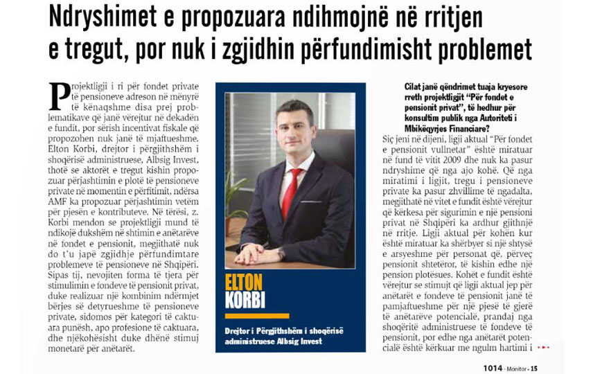 Albsig Invest Sh.a. është një Shoqëri Administruese e Fondeve të Pensionit Privat dhe Sipërmarrjeve të Investimeve Kolektive. Shoqëria operon si shoqëri aksionare me seli qendrore në Bulevardin “Bajram Curri”, “Downtown One”, Albsig HQ, Kati 16, 1010, Tiranë, Shqipëri, dhe është regjistruar në Qendrën Kombëtare të Biznesit më datë 04.10.2019. Shoqëria është licencuar si Shoqëri Administruese nga Bordi i Autoritetit të Mbikëqyrjes Financiare (AMF), me vendimin nr. 210, datë 22.11.2019, duke u pajisur me licencën nr. 5, pa afat. Kjo licencë i mundëson Albsig Invest të: